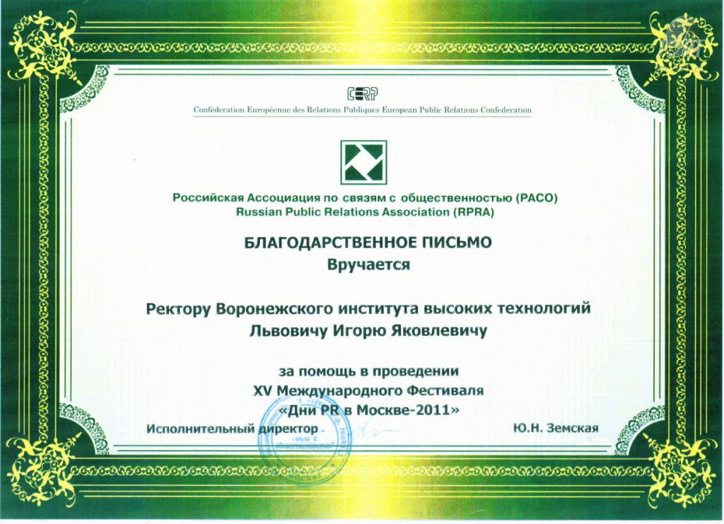 XV Международный Фестиваль «Дни PR в Москве-2011» прошел 15-16 декабря 2011 г. в Московском Государственном Институте Международных Отношений.